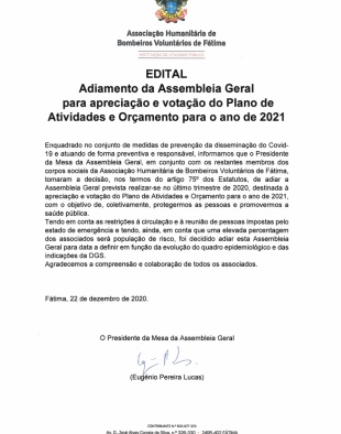 • ADIAMENTO À ASSEMBLEIA GERAL